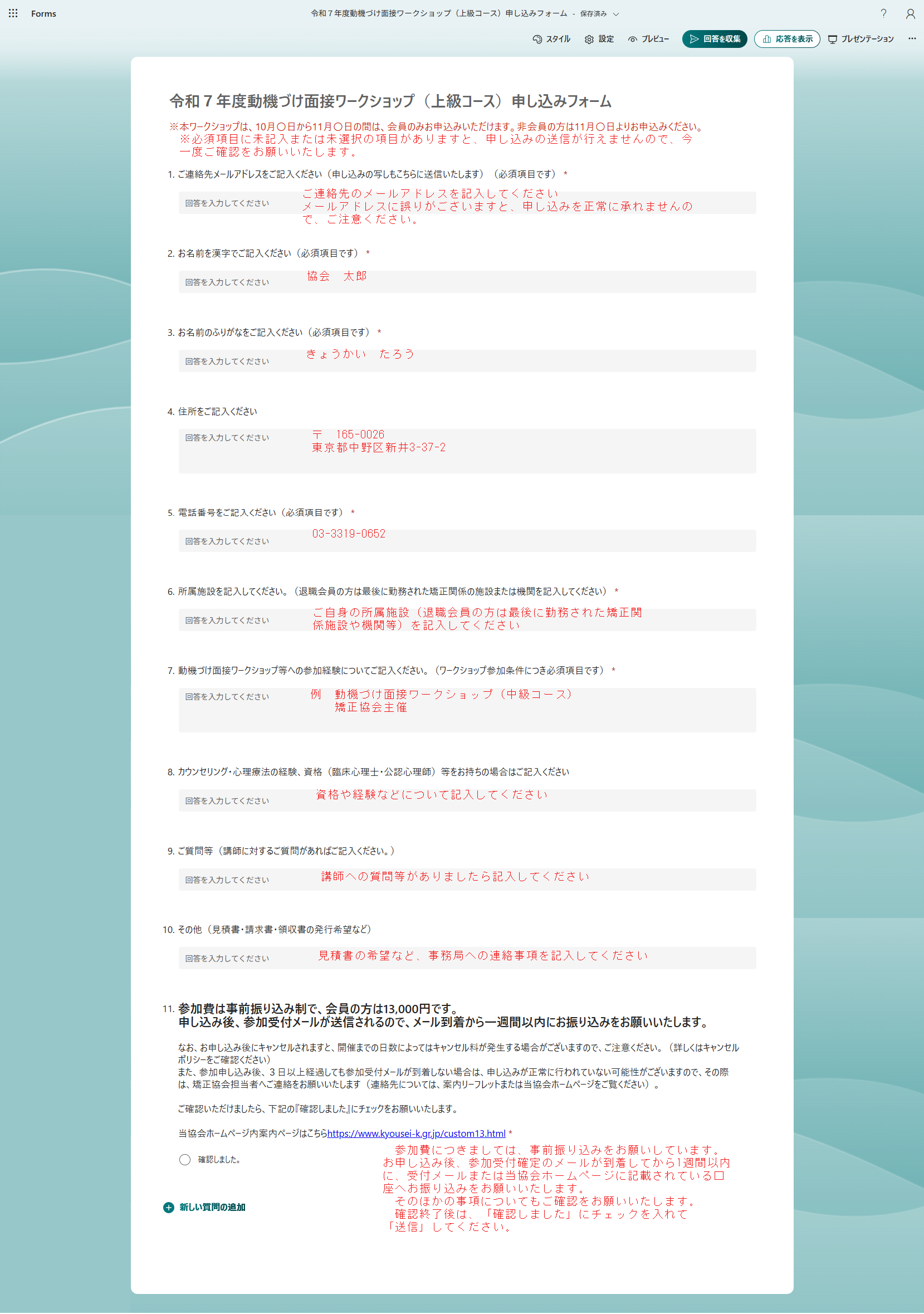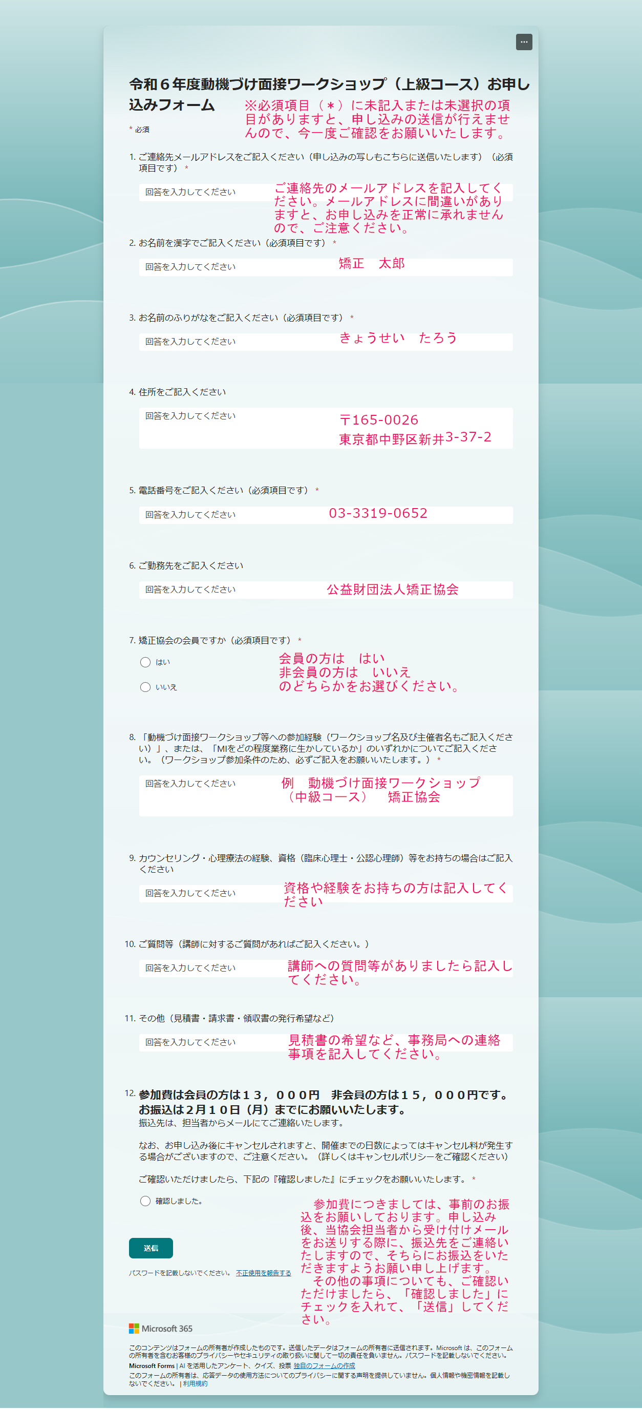 ・参加申込書(動機づけ面接ワークショップ上級コース)